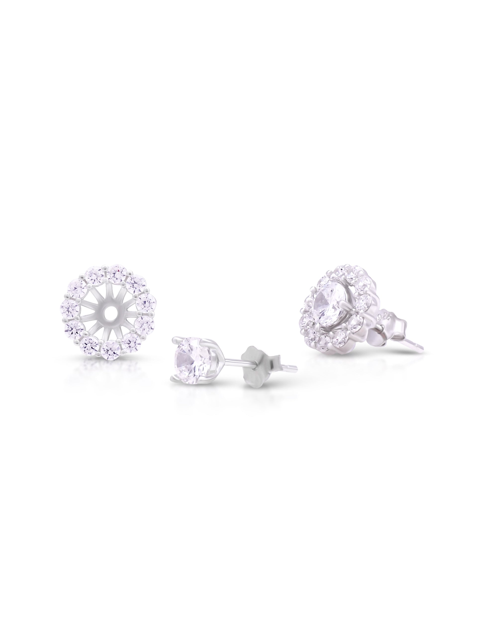 ✔ 3-in-1 Earring Set – Floral halo stud, solitaire stud, and dome/cage-style stud