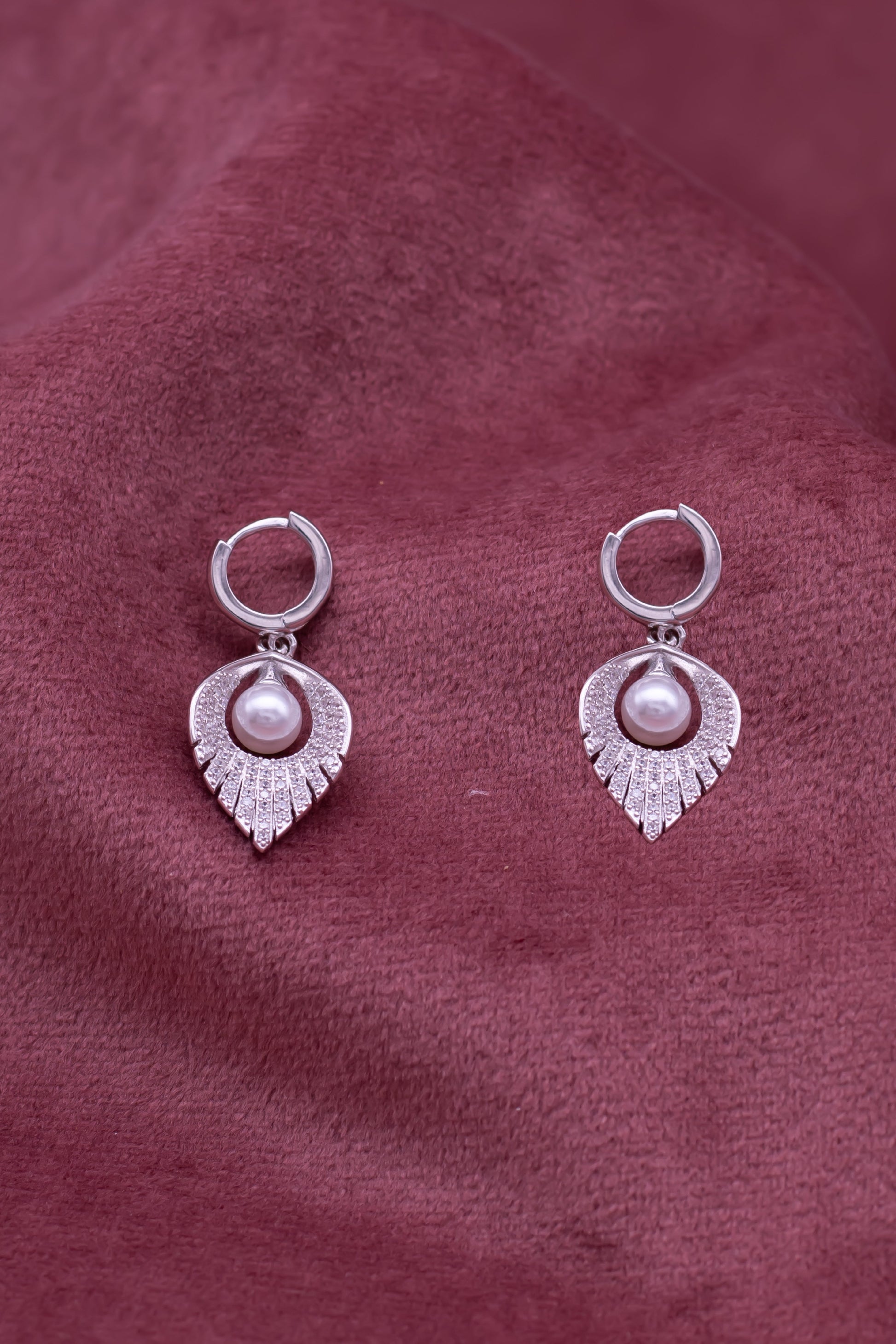 Elegant Pearl Leaf Drop Earrings | Silver CZ Dangle Earrings for Women & Girls | Party & Daily Wear Jewelry